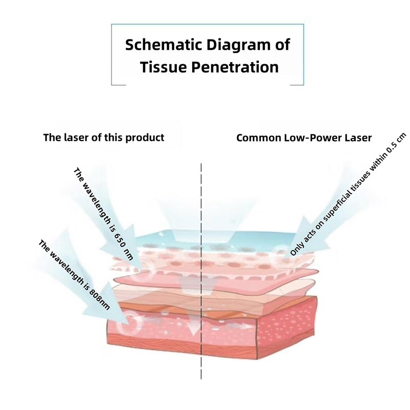 يعد الجهاز العلاجي بالليزر أشباه الموصلات عالي الجودة HTSY® أحد معدات إعادة التأهيل الطبي التي تولد التأثيرات التنظيمية الحيوية من خلال أشعة الليزر ذات أطوال موجية محددة. يستخدم جهاز العلاج بالليزر أشباه الموصلات HTSY® الخاص بنا 650 نانومتر ومصادر ضوء الليزر أشباه الموصلات 810 نانومتر. يمكن أن يعزز تجديد الخلايا، ويسرع إصلاح الأنسجة، ويحسن الدم الدورة الدموية، وتقليل الالتهاب وتخفيف الألم، وتخفيف الوذمة، وتنظيم وظيفة المناعة في الجسم. علاوة على ذلك، لا ينطبق هذا العلاج على آفات الجلد السطحية فحسب، بل إنه فعال أيضًا في علاج آفات الأنسجة العميقة، مما يحقق علاجًا علاجيًا التأثيرات من الطبقات السطحية إلى الطبقات العميقة.
